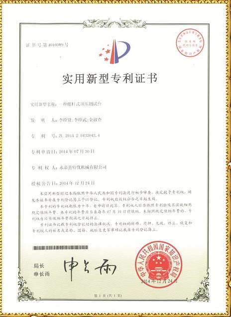 螺桿式測試臺技術(shù)專利 頂壓式試驗(yàn)臺專利