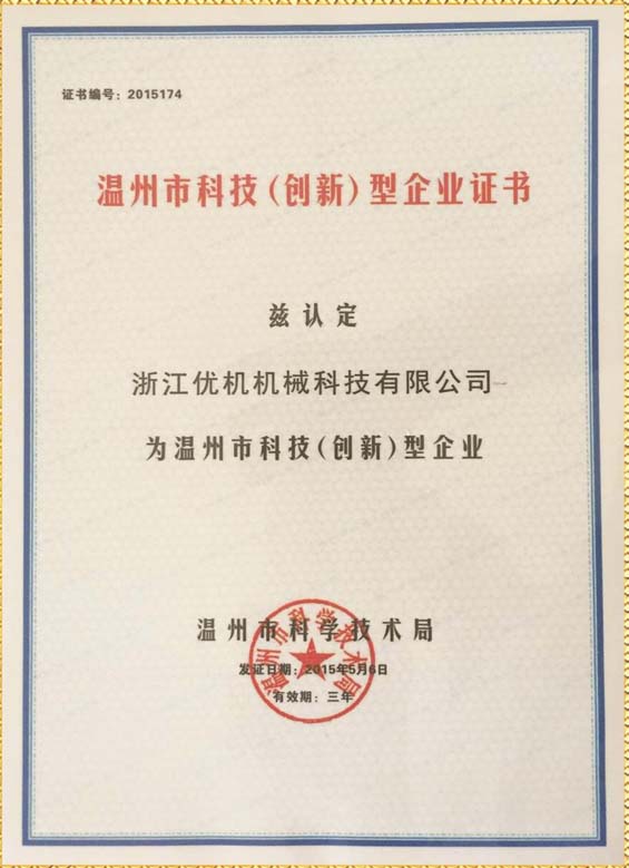 溫州市科技(創(chuàng)新型)企業(yè)證書
