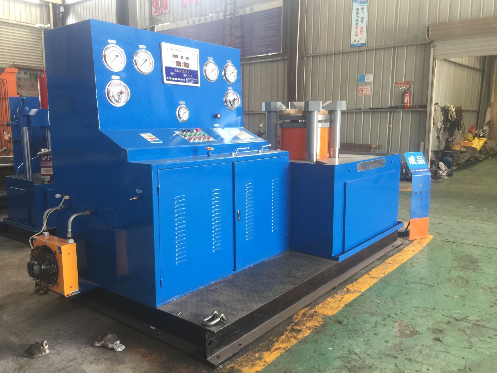 三、接通電源,按油泵啟動(dòng)按鈕,檢查電機(jī)轉(zhuǎn)動(dòng)方向,是否正確(順時(shí)針?lè)较?進(jìn)行5 — 10分鐘空載運(yùn)轉(zhuǎn)后,調(diào)節(jié)油泵壓力在5 0MPa進(jìn)行試機(jī),各種動(dòng)作,檢查各管路有無(wú)泄漏,發(fā)現(xiàn)不良現(xiàn)象,應(yīng)立即停機(jī)排除。